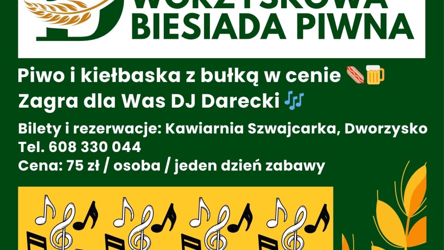 O specjalną oprawę taneczno - biesiadną zadba DJ Darecki, a klimat piwnej zabawy tworzycie Państwo sami.