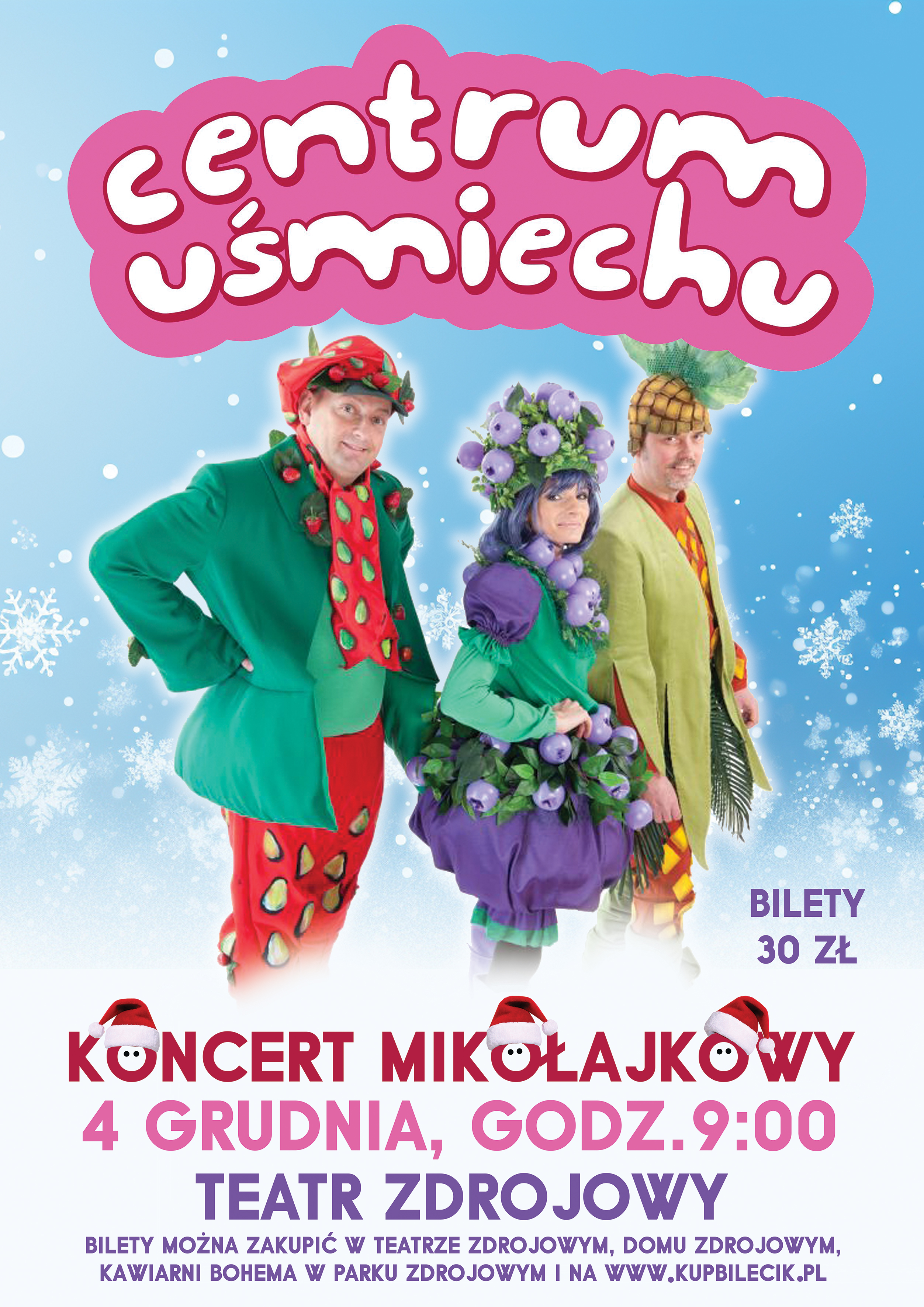 W programie tym biorą udział trzy postaci – najbardziej świąteczna postać w Owocowie – Pan Orzeszek, a także znane i lubiane przez dzieci owoce Jagoda i Truskawka. Tematyka show budowana jest wokół świątecznego klimatu, dlatego też kilka piosenek ma charakter świąteczno-zimowy – oczywiście niezaprzeczalne hity Centrum Uśmiechu również są wykonywane podczas koncertu.