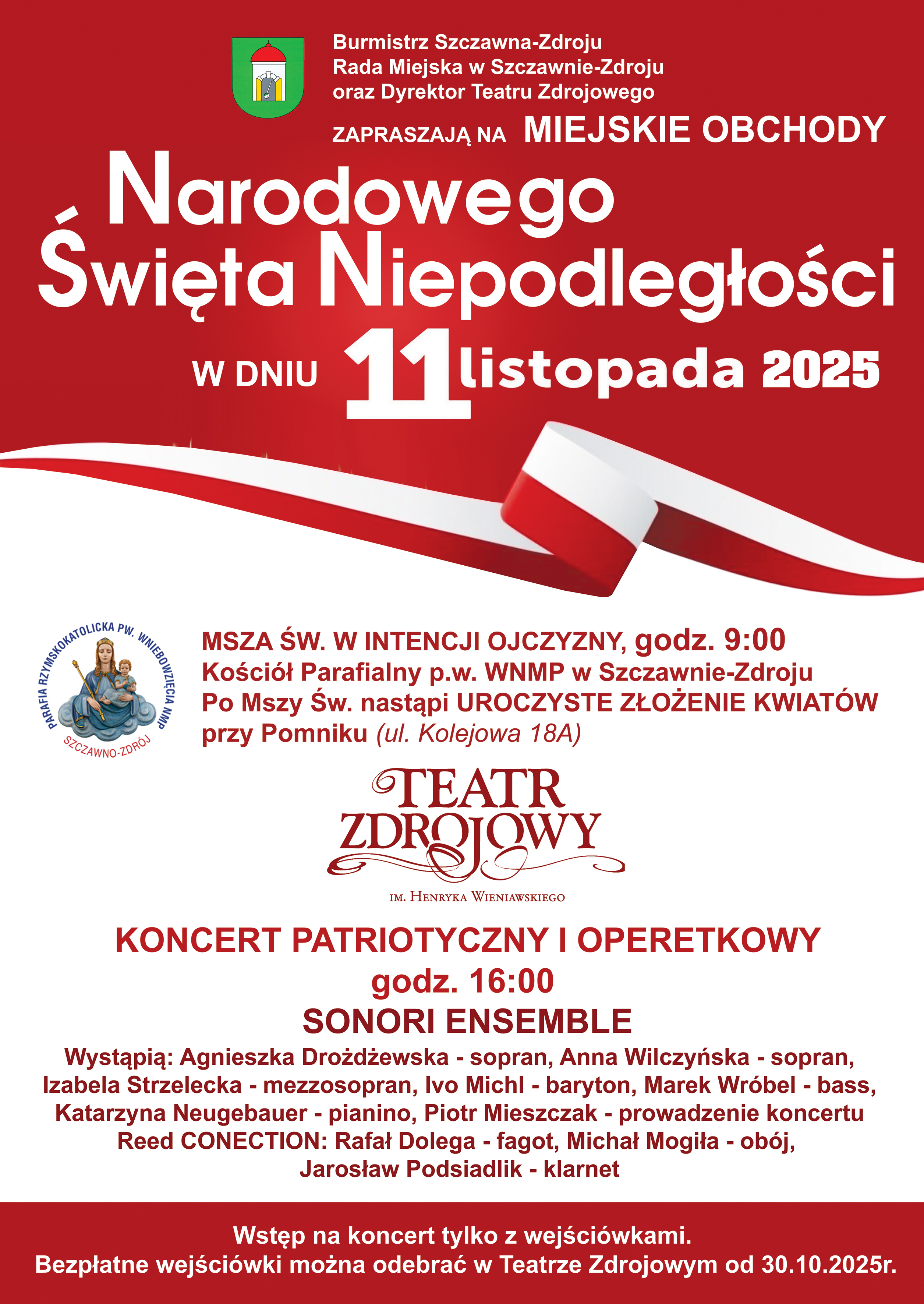 Wstęp na koncert tylko z wejściówkami. Bezpłatne wejściówki można odebrać w Teatrze Zdrojowym od 30.10.2025r.