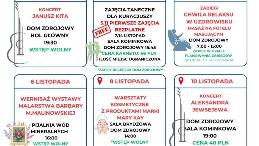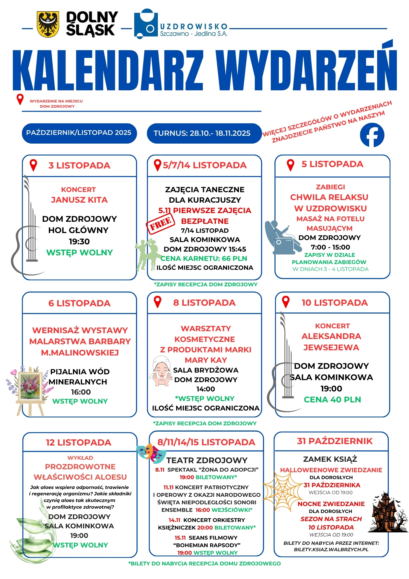 KALENDARZ WYDARZEŃ W UZDROWISKU OD 28.10.2025 DO 18.11.2025